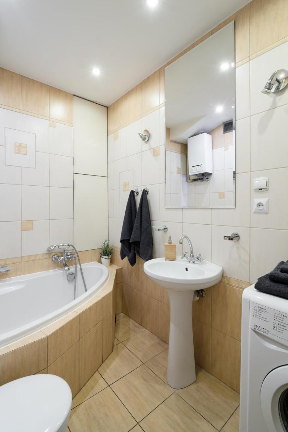 Oferta apartamentu obejmuje kilka sypialni (2), salon, kuchnię z pełnym wyposażeniem, w tym lodówką i ekspresem do kawy, a także łazienkę (1) z wanną oraz suszarką do włosów. W apartamencie zapewniono ręczniki i pościel.