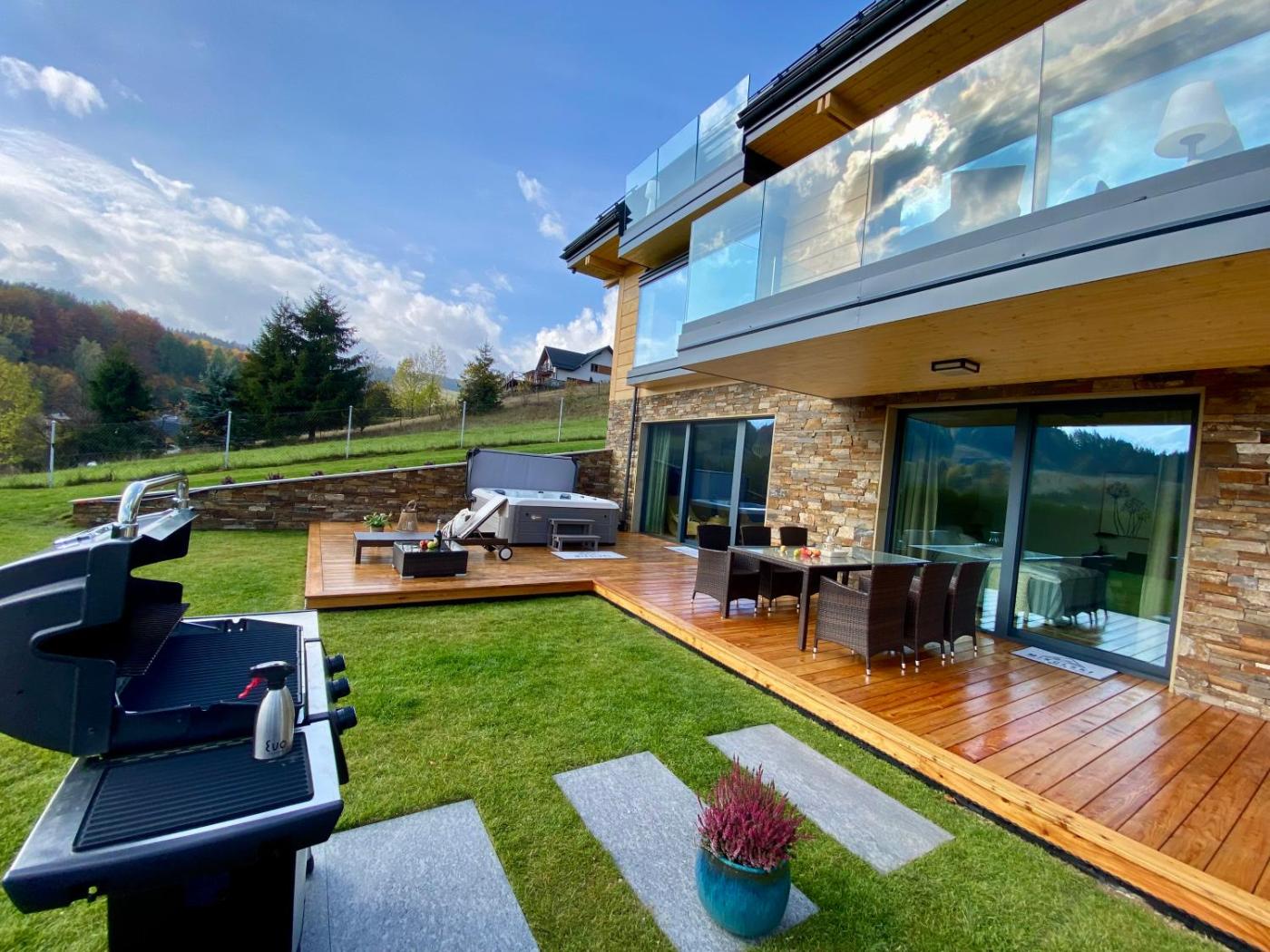 Willa. The sauna and fireplace are the standout features of this villa. Featuring a private entrance, this air-conditioned villa is comprised of 1 living room, 4 separate bedrooms and 4 bathrooms with a bath and a shower. Guests will find a stovetop, a refrigerator, a dishwasher and kitchenware in the fully equipped kitchen. The villa also has a barbecue. The spacious villa offers a flat-screen TV with streaming services, a washing machine, soundproof walls, a tea and coffee maker as well as garden views. The unit offers 5 beds. Willa - 10 osobowy. Powierzchnia pokoju ok.: 200 mkw.