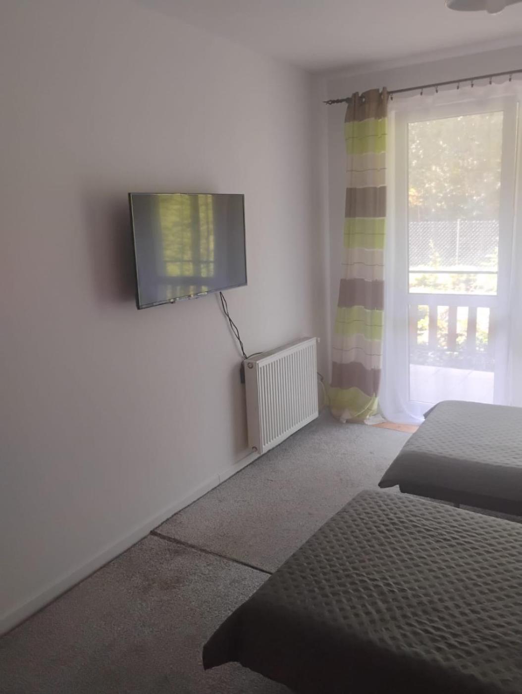 Pokój dwuosobowy z prywatną łazienką. Providing free toiletries, this double room includes a private bathroom with a shower and a hairdryer. Guests can make meals in the kitchen that is equipped with a stovetop, a refrigerator, kitchenware and an oven. This wheelchair accessible double room features a washing machine, a seating area with a flat-screen TV and a roll-in shower. Pokój Dwuosobowy - 3 osobowy. Powierzchnia pokoju ok.: 17 mkw.