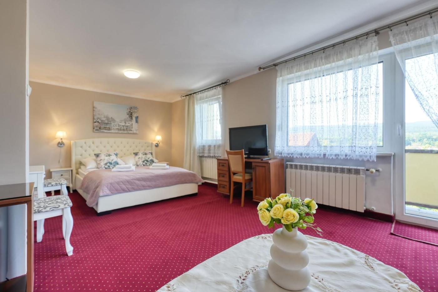 Duży pokój dwuosobowy. The double room provides a wardrobe, an electric kettle, as well as a private bathroom featuring a shower and a hairdryer. This double room features a carpeted floor, heating, a flat-screen TV and mountain views. The unit offers 1 bed. Pokój Dwuosobowy - 2 osobowy. Powierzchnia pokoju ok.: 18 mkw. ;