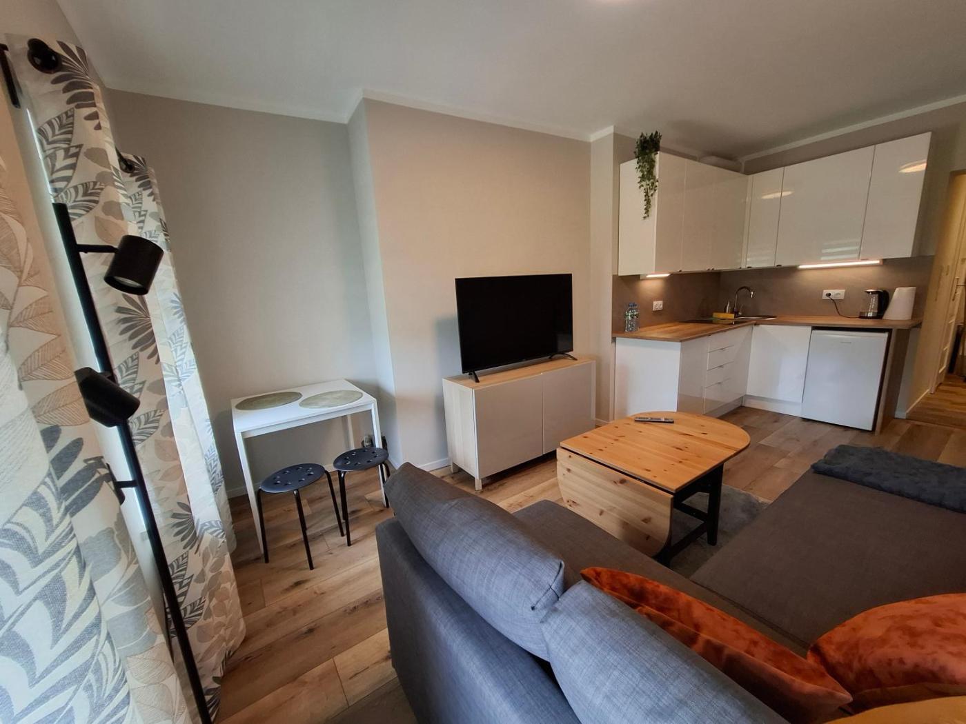 Apartament z 1 sypialnią. The apartment has 1 bedroom, 1 bathroom with a bath and a kitchenette. The apartments kitchenette is available for cooking and storing food. The apartment features a washing machine, an electric kettle, heating, as well as a flat-screen TV. The unit has 1 bed. Apartament - 2 osobowy. Powierzchnia pokoju ok.: 20 mkw.